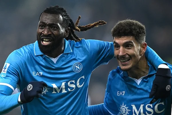 Mg Udine 14/12/2024 - campionato di calcio serie A / Udinese-Napoli / foto Matteo Gribaudi/Image Sport nella foto: esultanza gol Andre’ Frank Anguissa, Di Lorenzo