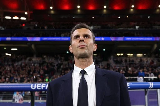 Juventus' Italian coach Thiago Motta looks on at the start of the UEFA Champions League football match between RB Leipzig and Juventus FC at the Red Bull Arena in Leipzig on October 2, 2024. (Photo by Ronny HARTMANN / AFP)