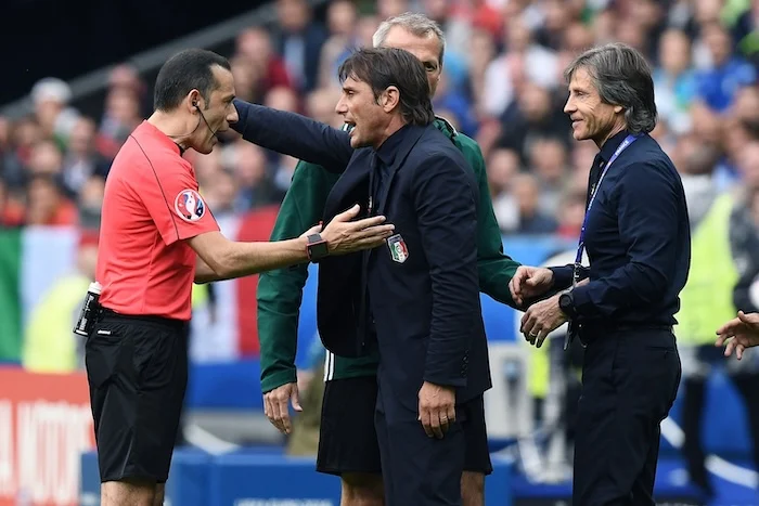 Mg Parigi (Francia) 27/06/2016 - Euro 2016 / Italia-Spagna / foto Matteo Gribaudi/Image Sport nella foto: Antonio Conte-Cuneyt Cakir