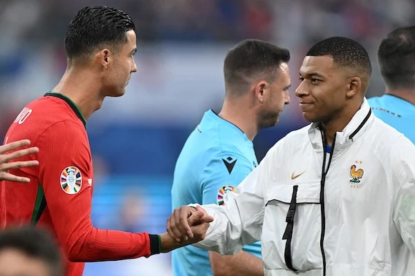 Db Amburgo (Germania) 05/07/2024 - Euro 2024 / Portogallo-Francia / foto Daniele Buffa/Image Sport nella foto: Cristiano Ronaldo-Kylian Mbappe’