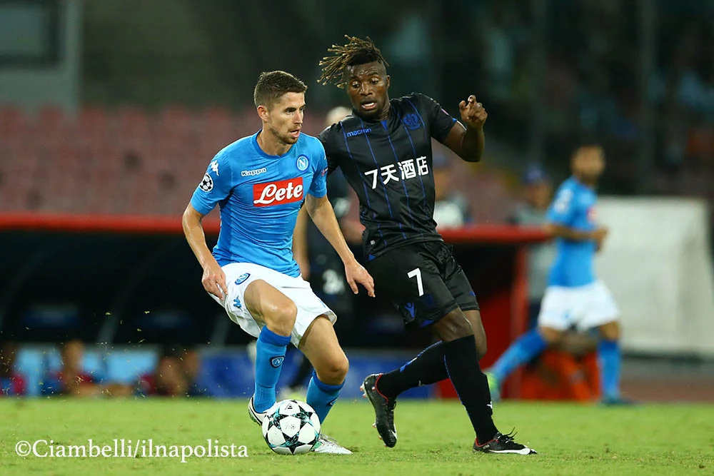 Uefa Champions League: Play-offs 1st leg Napoli v Nice Jorginho of Napoli and Allan Saint-Maximin of Nice at San Paolo Stadium in Naples, Italy on August 16, 2017. Photo Matteo Ciambelli / NurPhoto