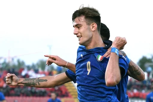 Db Monza 12/10/2021 - qualificazioni Europeo U21 / Italia-Svezia / foto Daniele Buffa/Image Sport nella foto: esultanza gol Lorenzo Lucca
