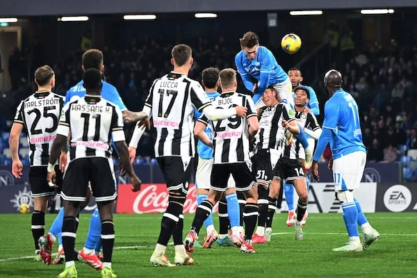 Intorno alla mezz’ora, il Napoli ha mostrato il suo miglior volto: ha cominciato a muovere il pallone con velocità e quindi con imprevedibilità, ma anche in modo paziente, ragionato, cercando di disarticolare la difesa avversaria. Così sono nate le occasioni fallite da Politano e McTominay, così si è generata quella pressione che ha portato al calcio d’angolo da cui è scaturito il gol del centrocampista scozzese. La squadra di Conte avrebbe dovuto continuare a spingere, sfruttando il momento di down atletico ed emotivo dell’Udinese, dopo l’inizio a mille all’ora. E invece è venuto l’errore combinato di Juan Jesus e Mazzocchi che ha portato al pareggio di Ekkelenkamp.