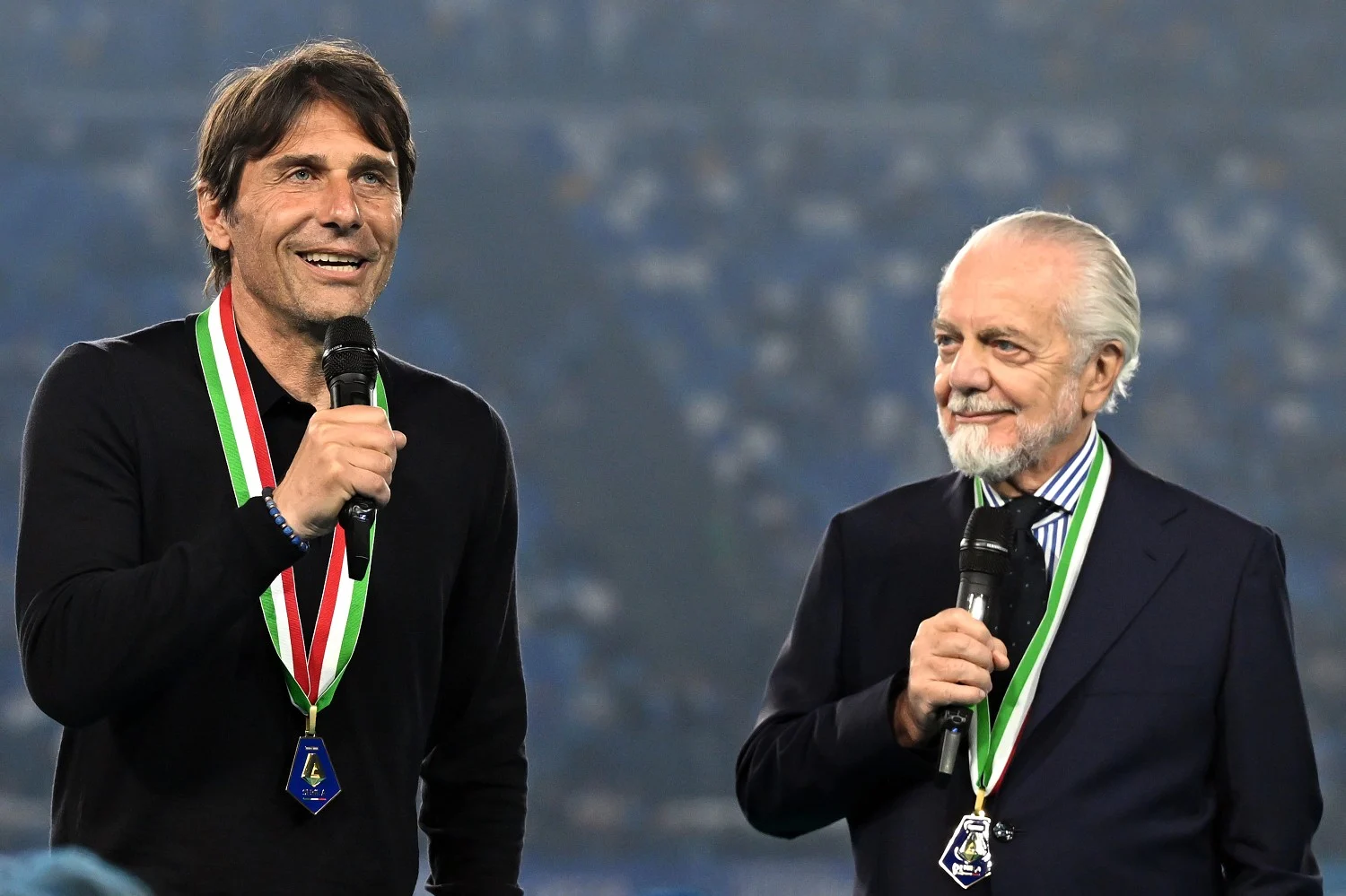 Mg Napoli 23/05/2025 - campionato di calcio serie A / Napoli-Cagliari / foto Matteo Gribaudi/Image Sport nella foto: Antonio Conte-Aurelio De Laurentiis