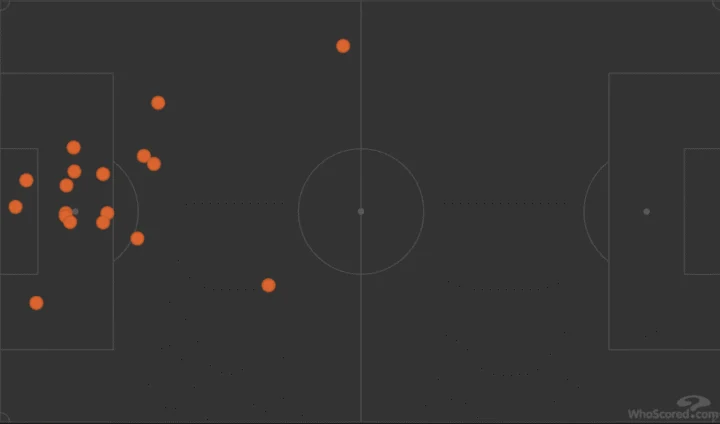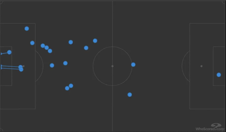In alto, la mappa dei 18 palloni spazzati da Maripán (8) e Coco (10). Sopra, invece, la mappa di tutti i 18 palloni giocati da Lucca