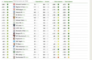 “In testa alla classifica c’è l’Eintracht Francoforte con un saldo positivo di +286 milioni di euro: 364 milioni di entrate e 78 milioni di spese. I tedeschi precedono Brighton & Hove (+221 milioni) e Stoccarda (+178 milioni). Completano la top five Atalanta (+150 milioni) e Benfica (+147 milioni). Al contrario, i bilanci più negativi negli ultimi cinque anni sono stati registrati da due club sauditi, Al-Hilal (-197 milioni) e Al-Nassr (-104 milioni), seguiti da tre squadre inglesi: West Ham (-99 milioni), Aston Villa (-85 milioni) e Manchester United (-74 milioni).