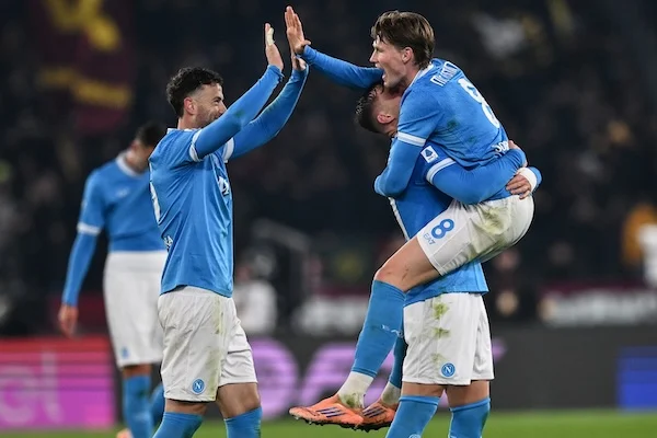 Nel frattempo Conte ha cambiato laddove ha potuto, ovvero ha inserito Politano, Elmas e Lucca al posto di Lang, Hojlund e David Neres, ma non ha mai modificato i principi della sua squadra. Negli ultimi minuti di partita, infatti, il suo Napoli continuava a ricacciare la Roma difendendosi in avanti, con marcature a uomo precise, puntuali ed efficaci. Anche dopo i cambi di Gasperini, che dopo Baldanzi – entrato all’intervallo – ha inserito anche Dybala, Bailey, El Ayanoui ed El Shaarawy. Non è bastato, non è servito, per smuovere le fondamenta di un Napoli moderno e combattivo.