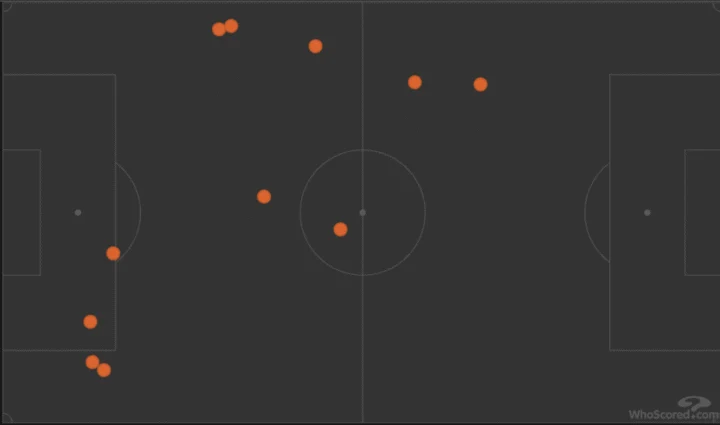 Tutti i contrasti vinti dall’Udinese dall’inizio della ripresa fino al gol di Ekkelenkamp. In questo campetto, la squadra bianconera attacca da sinistra verso destra.