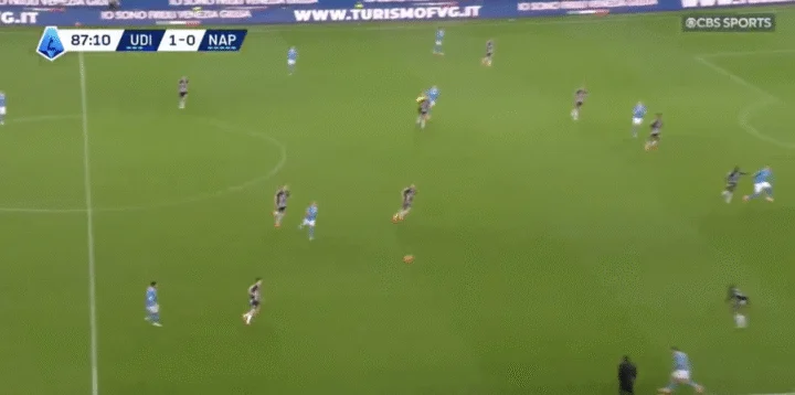I cambi effettuati dal tecnico azzurro (dentro Politano, Lobotka, Olivera Gutiérrez e Lucca, fuori Beukema, Lang, Buongiorno, Spinazzola ed Elmas) hanno determinato un 4-2-4 iper-offensivo. Con Olivera e Rrahmani centrali, con Di Lorenzo e Gutiérrez esterni, con Lobotka e McTominay davanti alla difesa. Con una linea a quattro offensiva composta da Politano, Lucca, Hojlund e David Neres. È con questa disposizione, anche se solo negli ultimi concitati minuti finali, che il Napoli ha creato le occasioni più nitide della sua partita. Non è riuscito a concludere nello specchio della porta di Okoye, ma in alcuni momenti ha messo in difficoltà la difesa dell’Udinese.