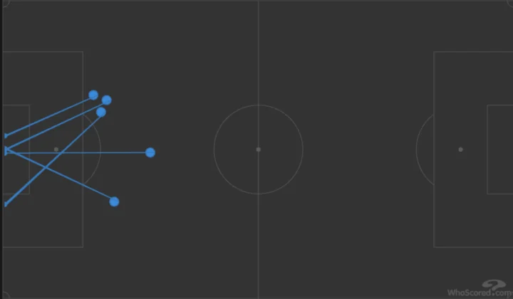 Per quanto riguarda invece le azioni manovrate, il Napoli è stato a dir poco evanescente. I dati sono eloquenti: quello di Vergara è stato l’unico tiro in porta scoccato dagli azzurri nel primo tempo. E, tra l’altro, il tentativo è arrivato da fuori area. Esattamente come le altre 4 conclusioni accumulate fino all’intervallo. Sì, avete letto bene: nel primo tempo, la squadra di Conte non ha mai tirato verso la porta dall’interno dell’area di rigore.