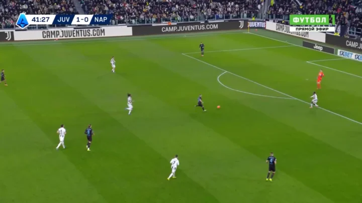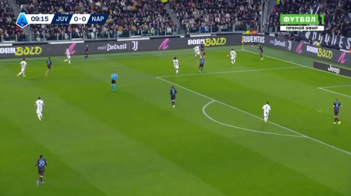 Come detto tra le righe, anche il Napoli ha provato ad aggredire la Juventus. A difendersi in avanti, in modo ambizioso e intenso. Non è andata benissimo, come detto la squadra di Conte è stata travolta dagli avversari e avrebbe potuto essere sotto di due gol, forse anche di tre, al minuto 25′. Il vero problema, però, sta nel fatto che gli azzurri non sono mai andati oltre a un certo ordine tattico. Con la palla tra i piedi, infatti, l’unica occasione propriamente detta è arrivata al minuto 21′. Grazie e con Vergara, abile a sfruttare un recupero palla in zona avanzato a opera di Gutiérrez.