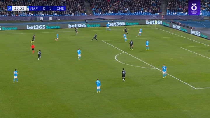 Proprio questa mossa ha mandato in tilt il Napoli. O meglio: una volta che la squadra di Conte, sfinita, ha smesso di aggredire in zona avanzata, di rimpicciolire il campo difensivo, di inibire il palleggio del Chelsea con il pressing, il Chelsea non ha dovuto fare altro che trovare i passaggi tra le linee in una zona di campo in cui aveva una netta superiorità. Ovvero sulla destra, dove – come detto – orbitavano due giocatori offensivi più James, decisamente più a suo agio come esterno di una linea a quattro che come braccetto di una difesa a tre. Per capire cosa intendiamo, basta guardare il gol di João Pedro: