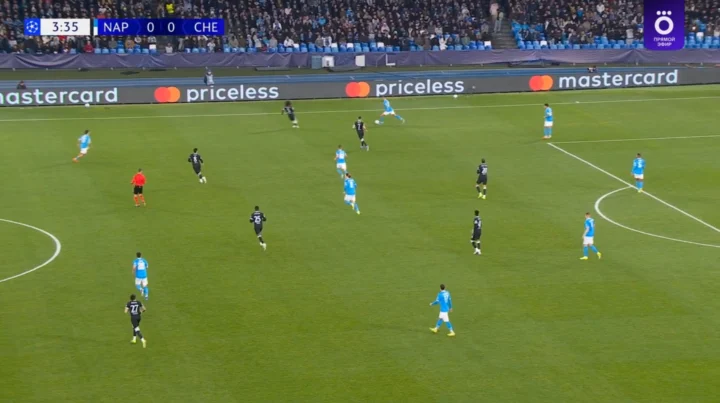 Il pressing alto del Chelsea con quattro uomini che entrano fin dentro la trequarti difensiva del Napoli