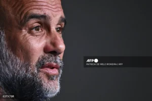Manchester City's Spanish head coach Pep Guardiola speaks during a press conference at the Camping World Stadium in Orlando on June 25, 2025 on the eve of the Club World Cup 2025 football match between Italy's Juventus and England's Manchester City. (Photo by PATRICIA DE MELO MOREIRA / AFP)