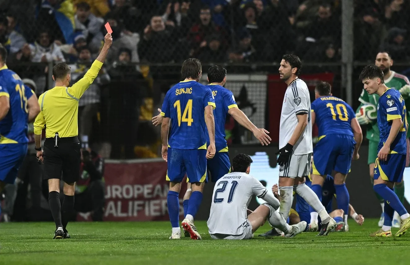 Db Zenica 31/03/2026 - spareggio qualificazioni Mondiali 2026 / Bosnia Erzegovina-Italia / foto Daniele Buffa/Image Sport nella foto: espulsione Alessandro Bastoni