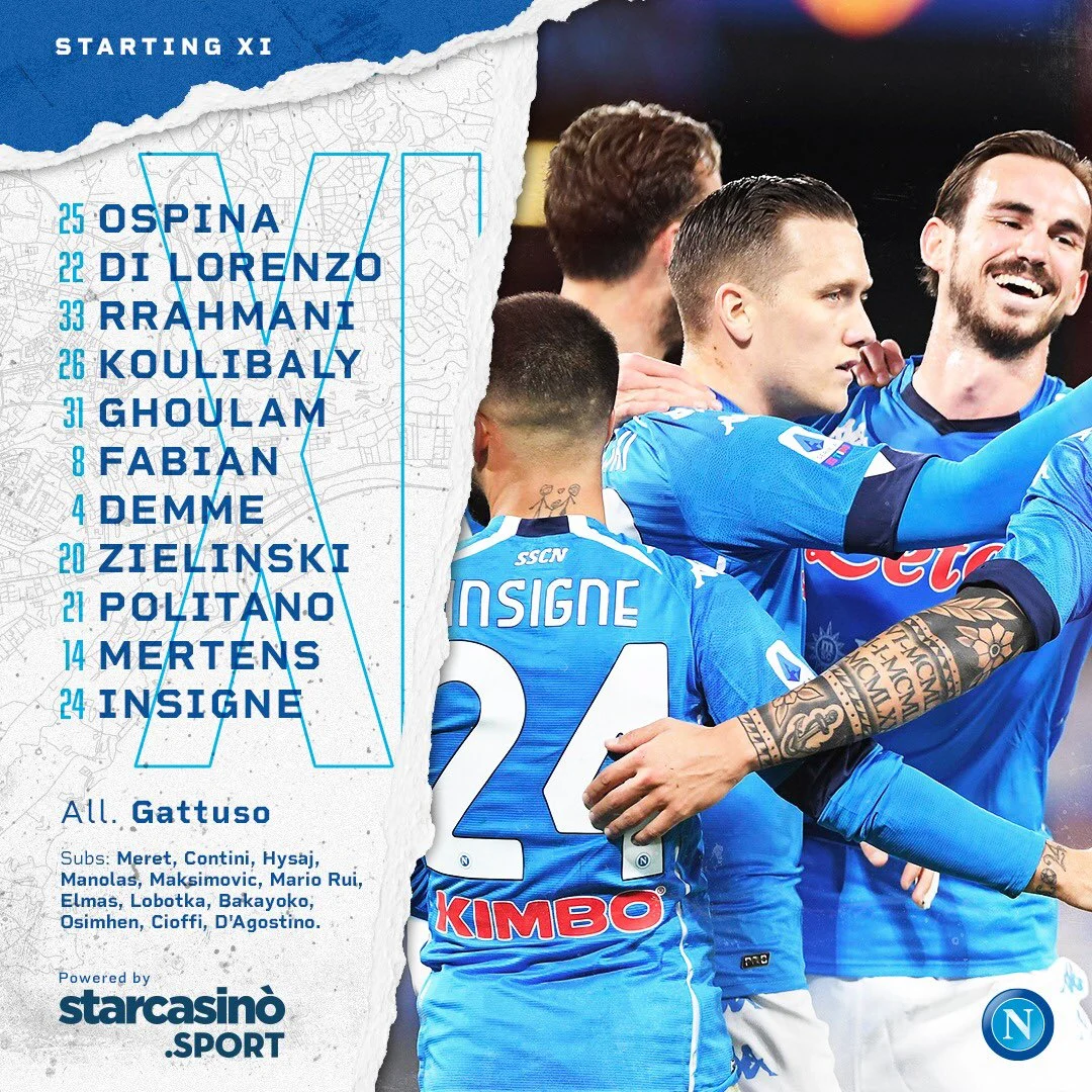 Le scelte di Gattuso. Ospina torna tra i pali. In difesa, con Faouzi, ci saranno Di Lorenzo, Rrahmani e Koulibaly. Mertens punta